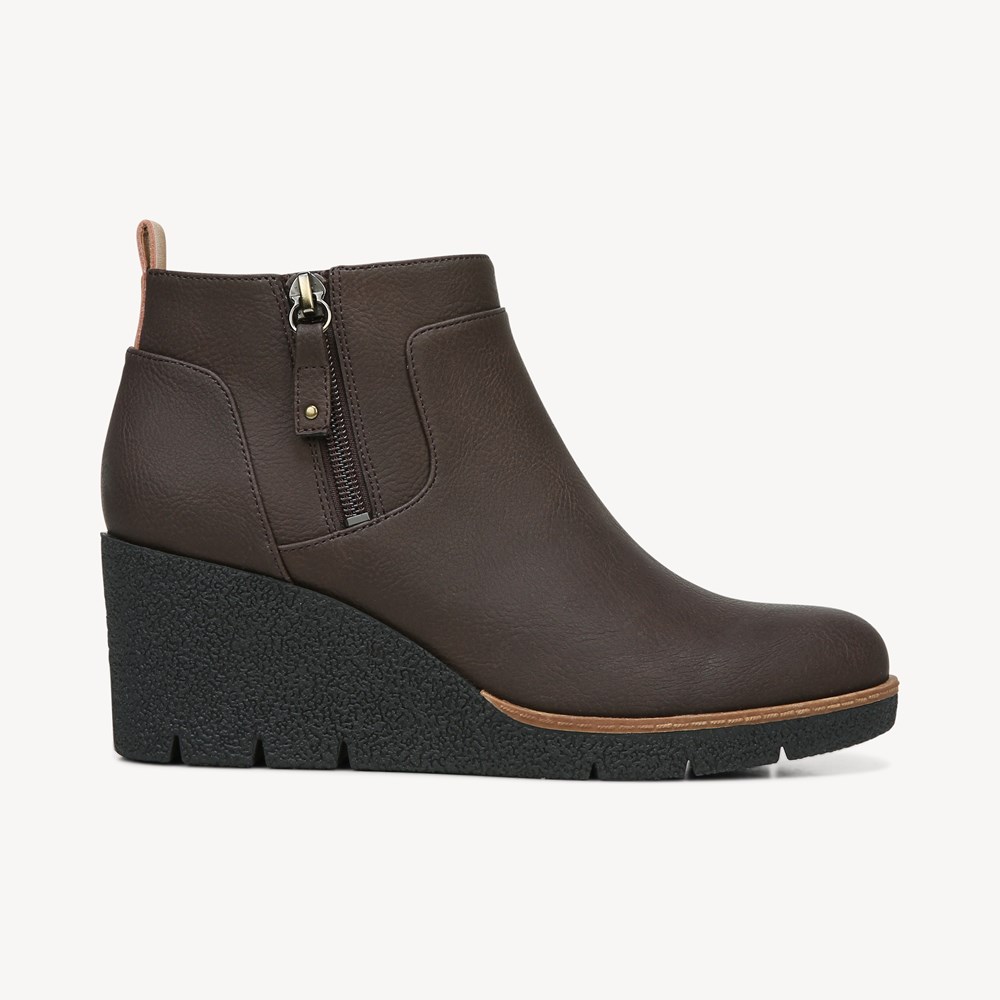 Boot nữ cổ ngắn da sáp Dr. Scholl's Shoes Women's Bianca Ankle Boot màu xám nâu - Giầy xuất khẩu Âu, Mỹ
