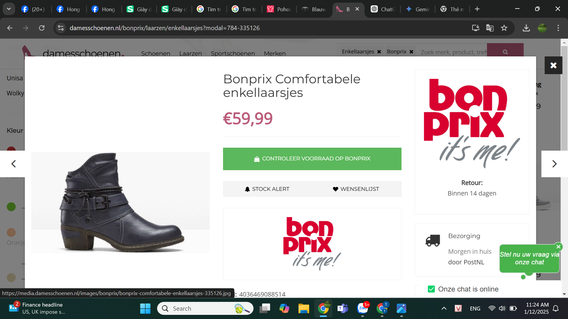 Boot nữ da thật Ankle boots Women in leather Bonprix Comfortabele enkellaarsjes - Giày da xuất dư sang Mỹ, Âu