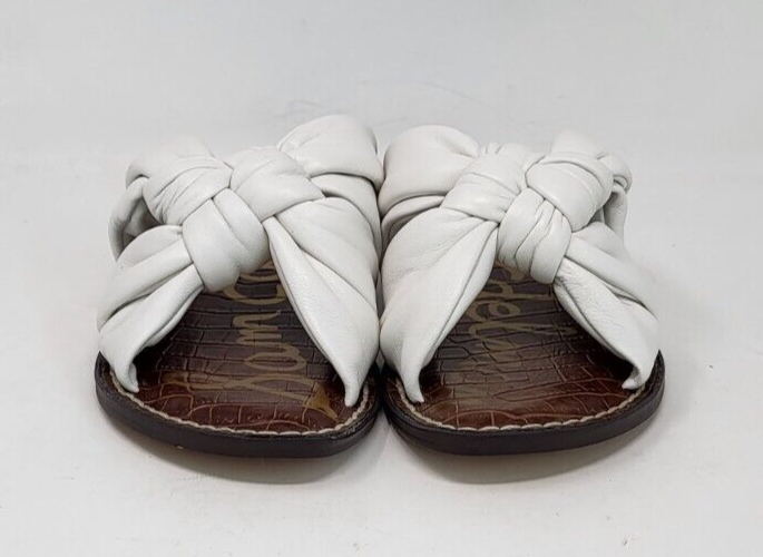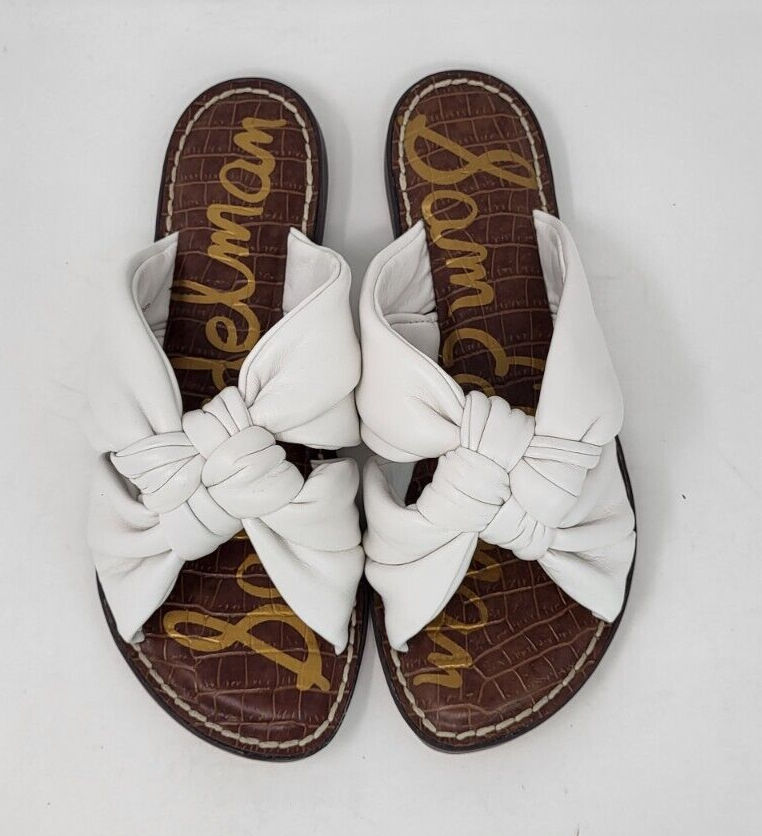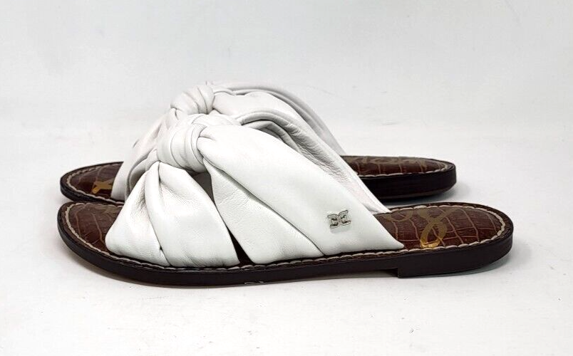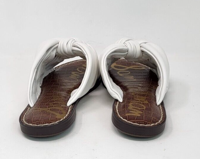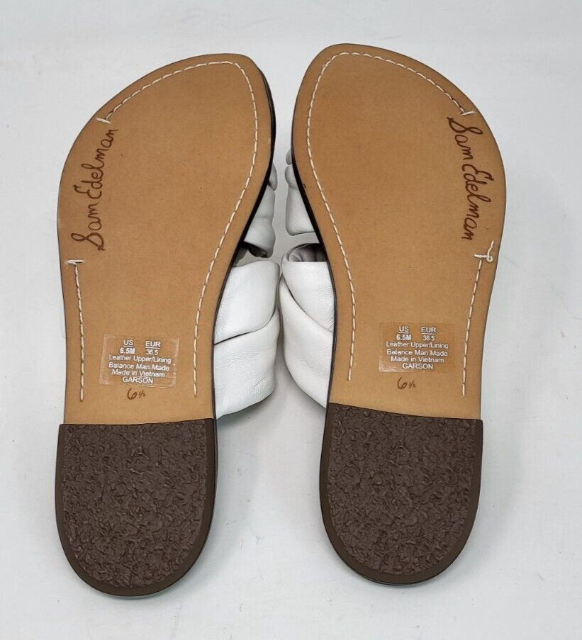 Dép Sandal nữ da thật Sam Edelman Women's Garson Flat Sandal Bright White - Giày xuất khẩu Âu, Mỹ