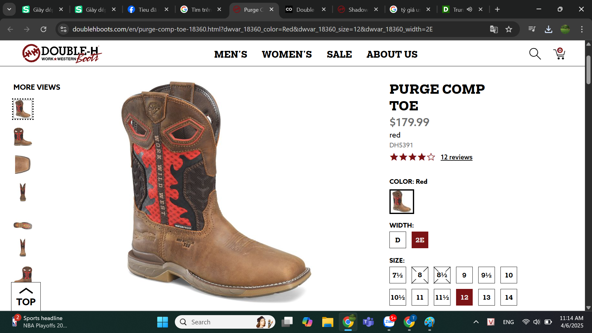 Giày bảo hộ nam, giày đi xe PKL, giày đi phượt da bò thật, chống nước, mũi bọc thép, đế cách điện và chống đinh chính hãng Brand: Double-H Boots MEN'S Purge Comp Toe - Giày xuất dư Mỹ