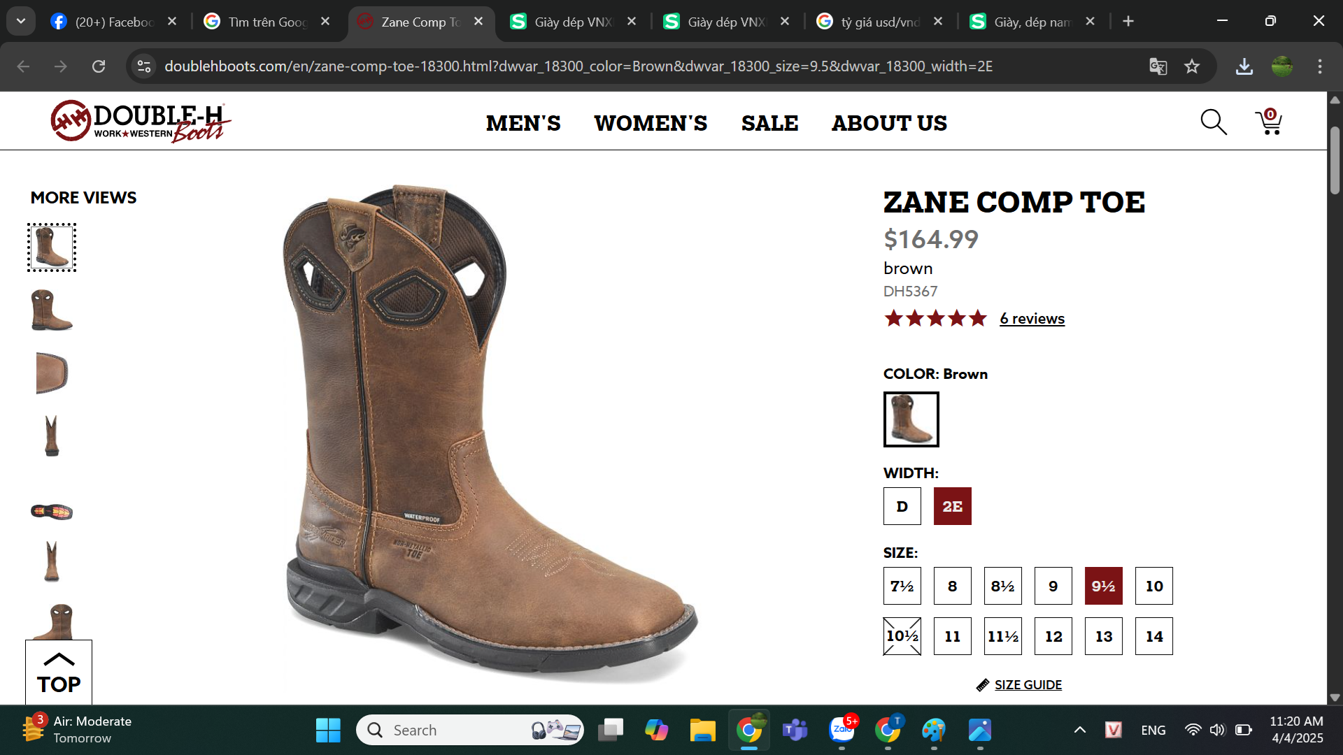 Giày bảo hộ nam, giày đi xe PKL, giày đi phượt da bò thật, chống nước, mũi bọc thép, đế cách điện và chống đinh chính hãng Brand: Double-H Boots Zane Comp Toe - Giày xuất dư Mỹ