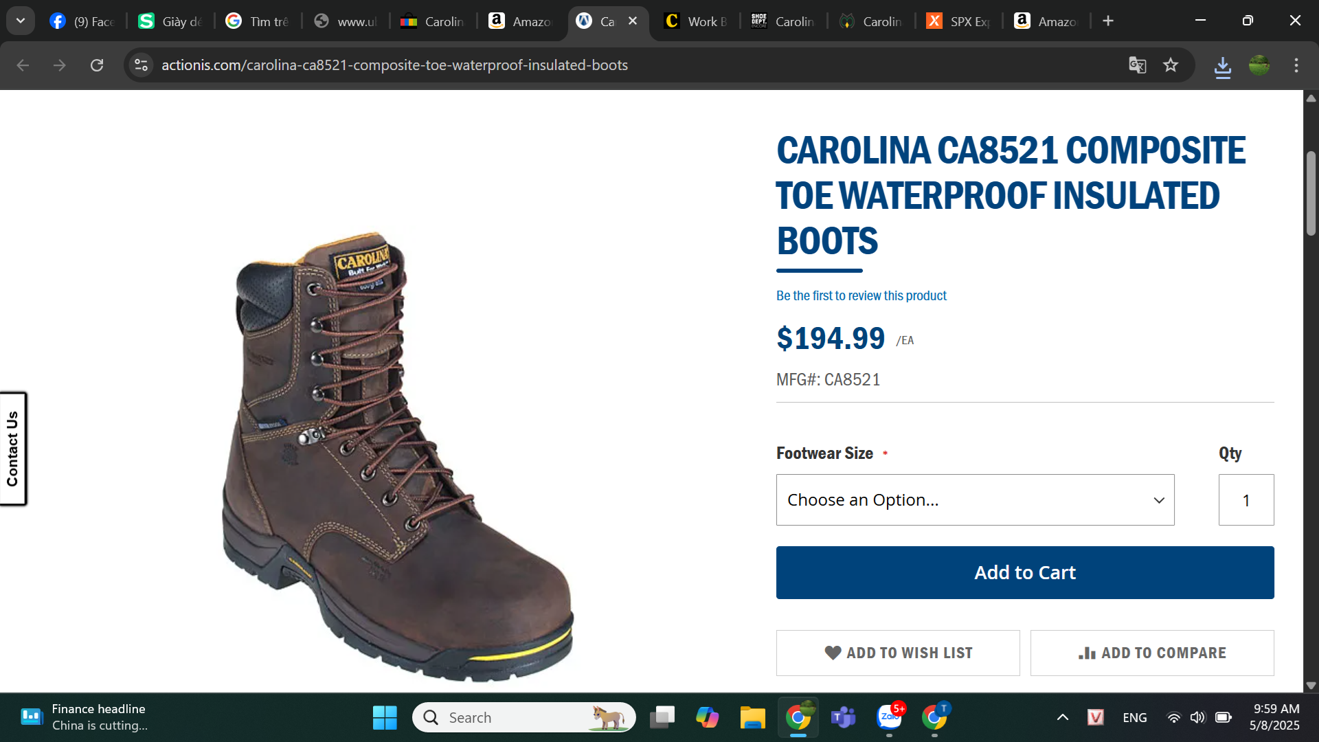 Boots Nam Giày bảo hộ nam, giày đi xe PKL, giày đi phượt da bò thật, chống nước, mũi bọc thép, đế cách điện và chống đinh chính hãng Carolina CA8521 Composite Toe Waterproof Insulated Boots