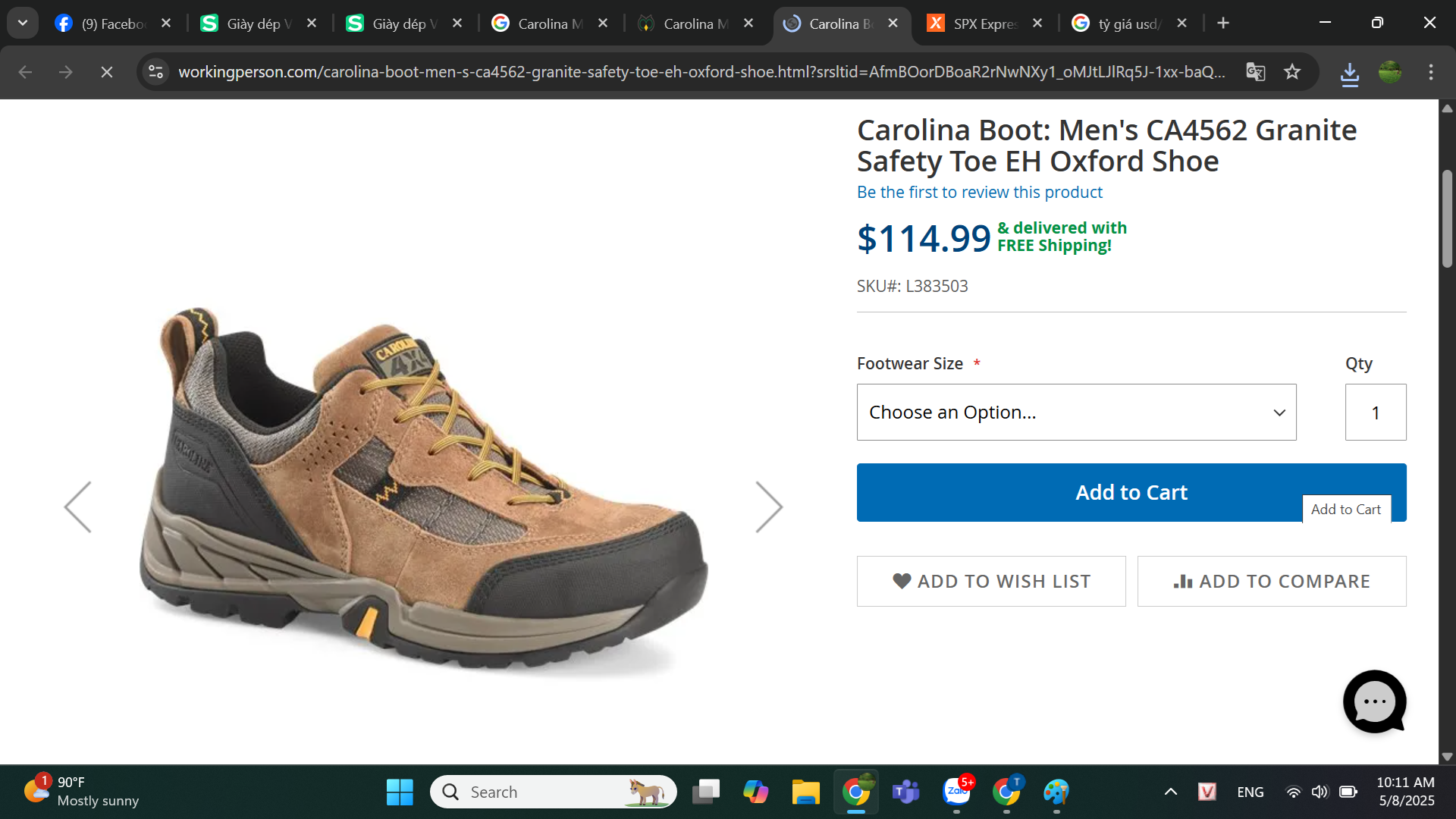 Boots Nam Giày bảo hộ nam, giày đi xe PKL, giày đi phượt da bò thật, chống nước, mũi bọc thép, đế cách điện và chống đinh chính hãng Carolina Men's Granite Steel Toe Oxford Work Shoe- Dark Brown - CA4562