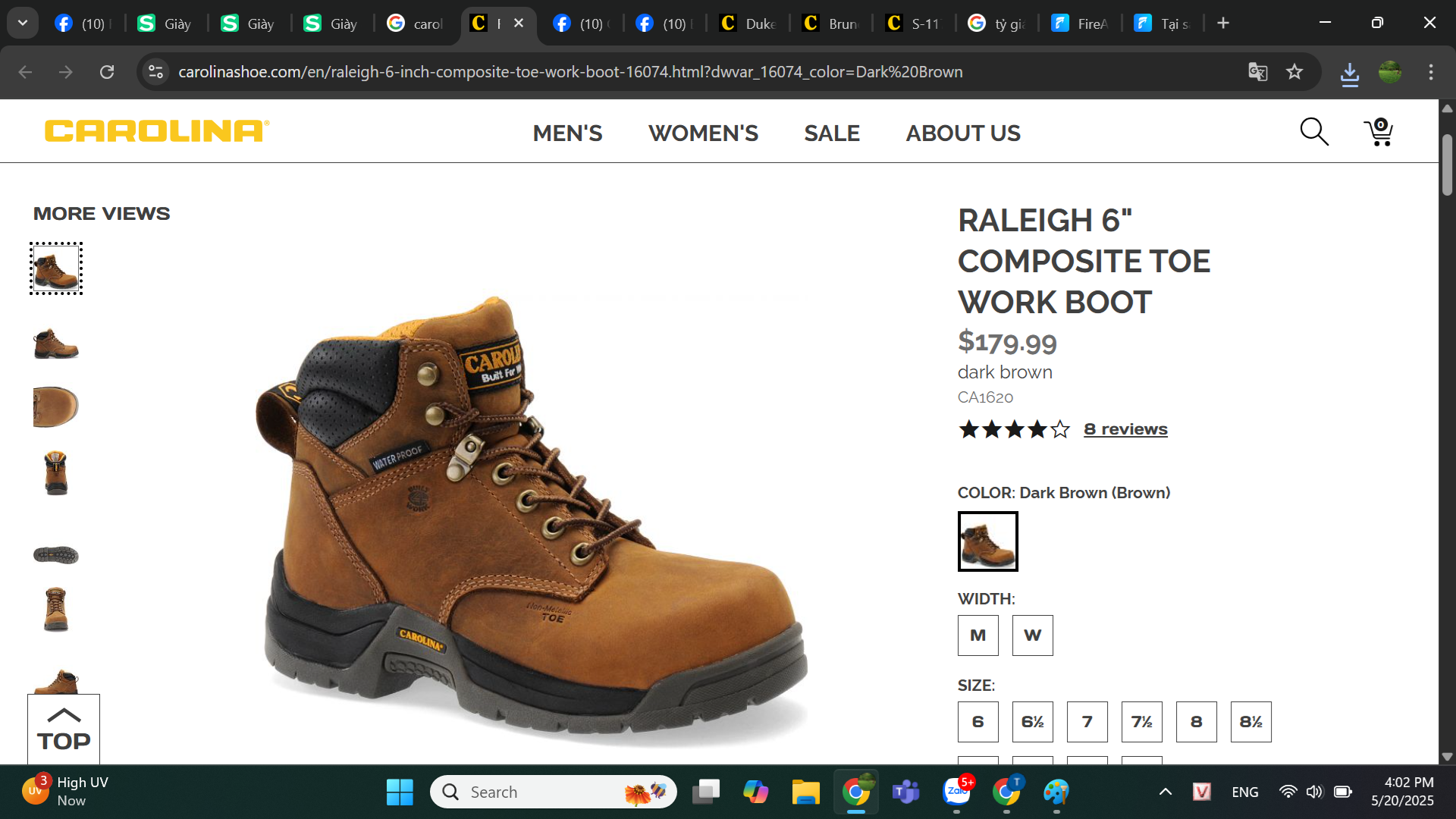 Boots Nam Giày bảo hộ nam, giày đi xe PKL, giày đi phượt da bò thật, chống nước, mũi bọc thép, đế cách điện và chống đinh chính hãng Carolina Raleigh 6" Composite Toe Work Boot