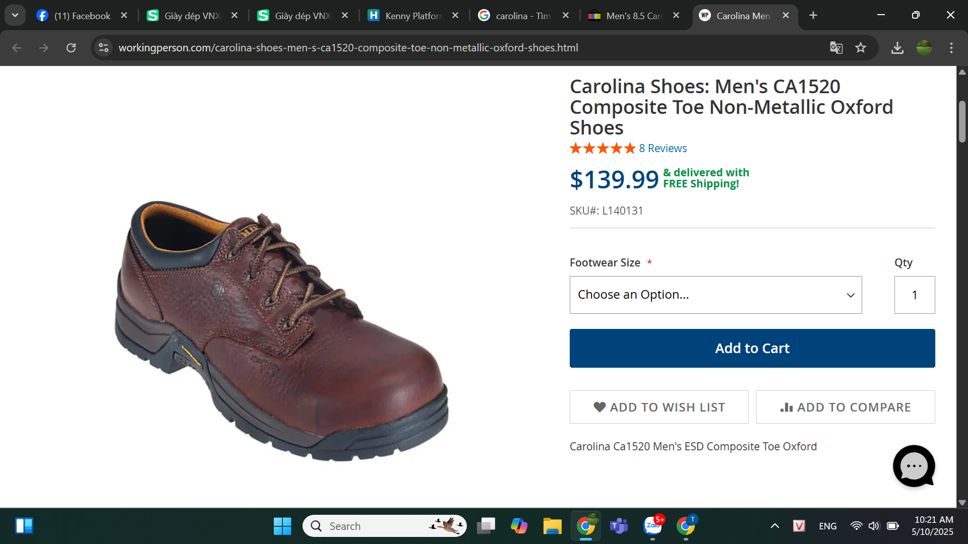 Boots Nam Giày bảo hộ nam, giày đi xe PKL, giày đi phượt da bò thật, chống nước, mũi bọc thép, đế cách điện và chống đinh chính hãng Carolina Shoes: Men's CA1520 Composite Toe Non-Metallic Oxford Shoes