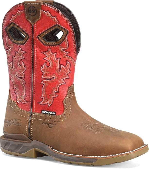 Giày bảo hộ nam, giày đi xe PKL, giày đi phượt da bò thật, chống nước, mũi bọc thép, đế cách điện và chống đinh chính hãng Double H Men's Phantom Rider Henly Red Waterproof Composite Toe Work Boots DH5358 - Giày xuất dư Mỹ