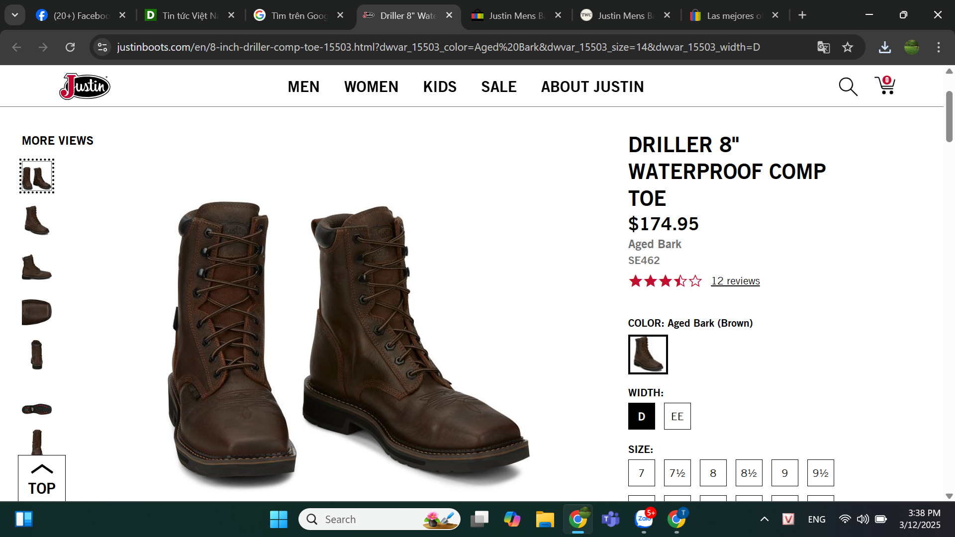 Giày bảo hộ nam, giày đi xe PKL, giày đi phượt da bò thật, chống nước, mũi bọc thép, đế cách điện và chống đinh chính hãng Justin - Giày xuất dư Mỹ