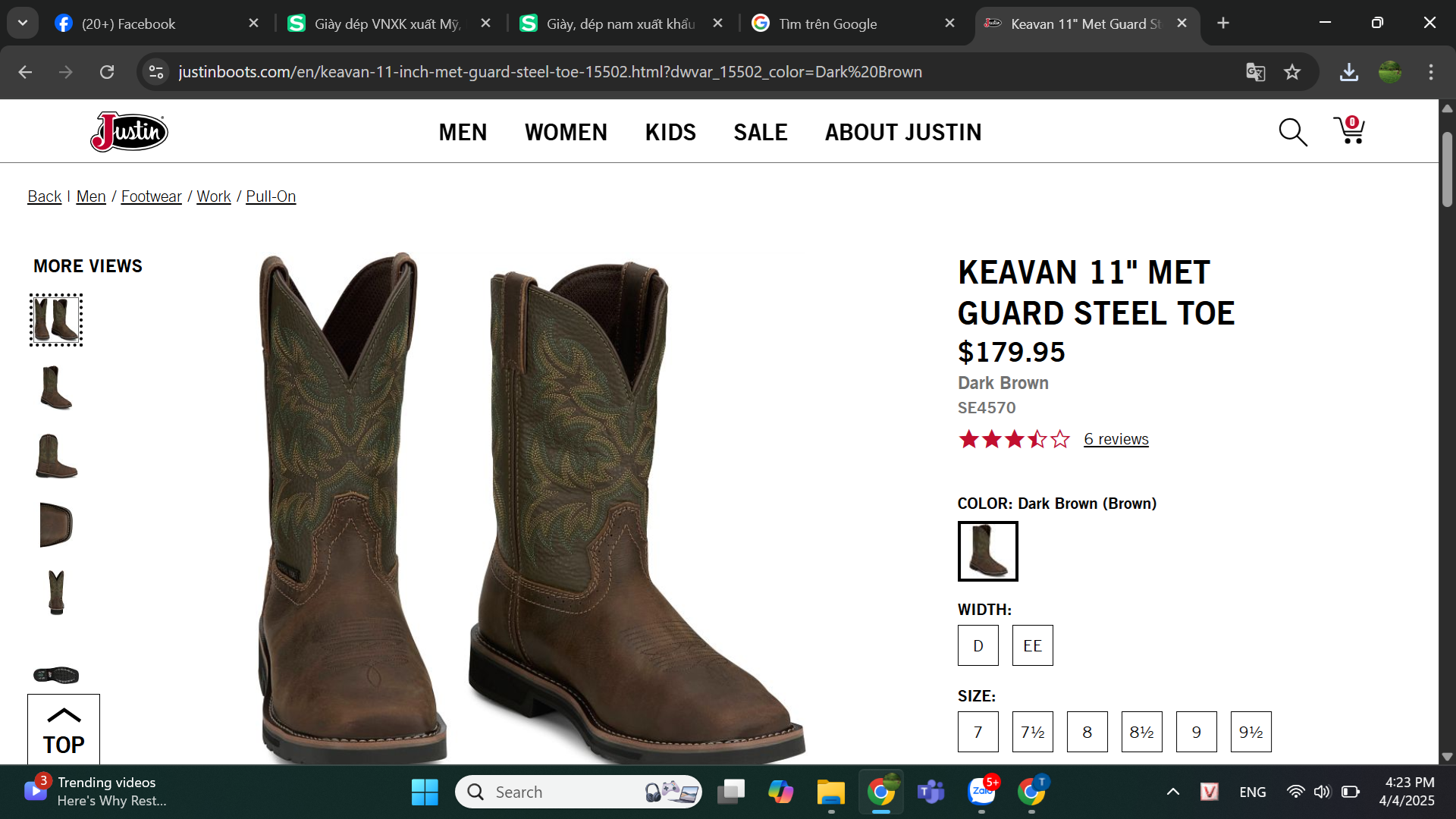 Giày bảo hộ nam, giày đi xe PKL, giày đi phượt da bò thật, chống nước, mũi bọc thép, đế cách điện và chống đinh chính hãng Justin Keavan 11" Met Guard Steel Toe - Giày xuất dư Mỹ