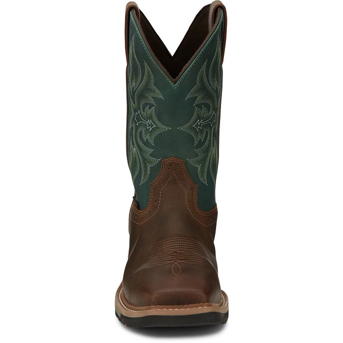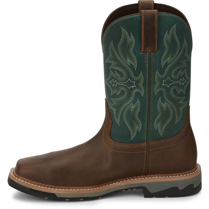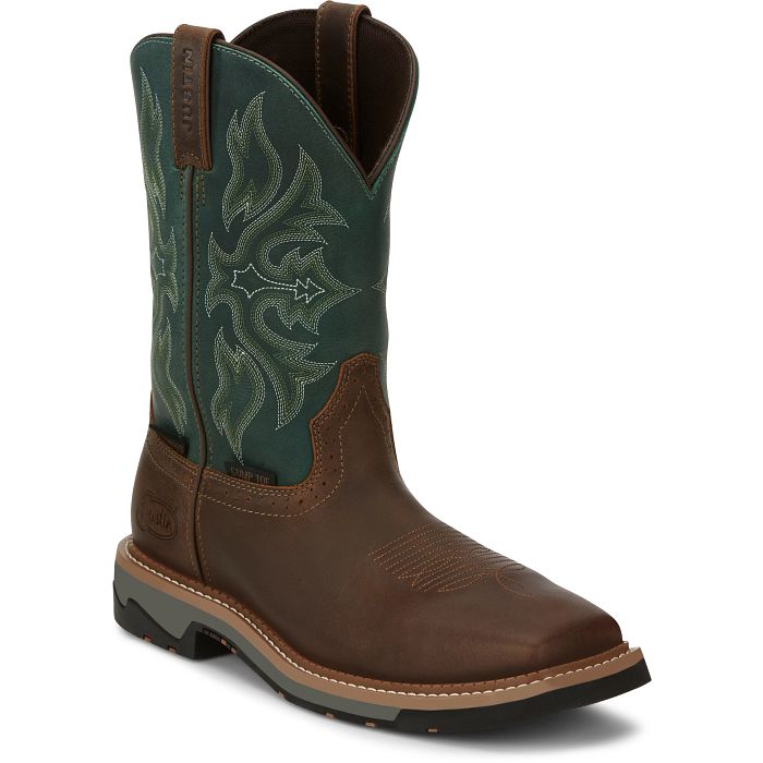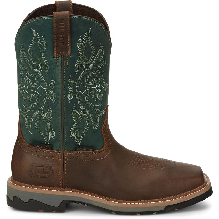 Giày bảo hộ nam, giày đi xe PKL, giày đi phượt da bò thật, chống nước, mũi bọc thép, đế cách điện và chống đinh chính hãng Justin Men's Driller Cowhide Steel-Toe Stampede Work Boots Bolt 11" Waterproof Comp Toe- Giày xuất dư Mỹ