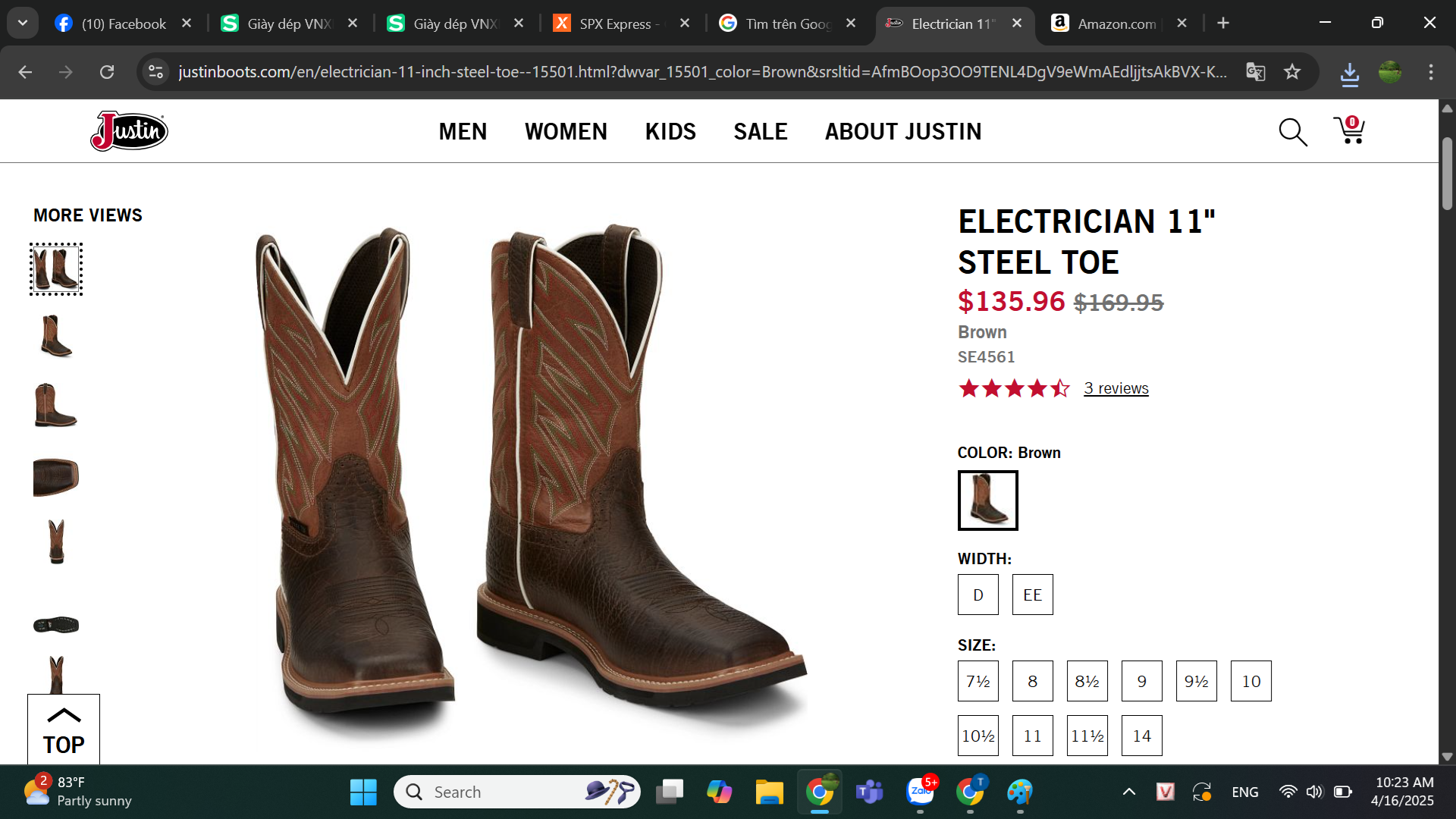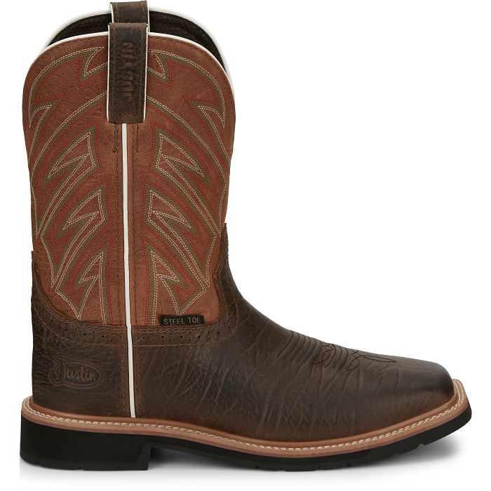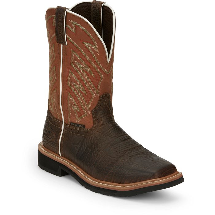 Giày bảo hộ nam, giày đi xe PKL, giày đi phượt da bò thật, chống nước, mũi bọc thép, đế cách điện và chống đinh chính hãng Justin Mens Electrician 11" Steel Toe