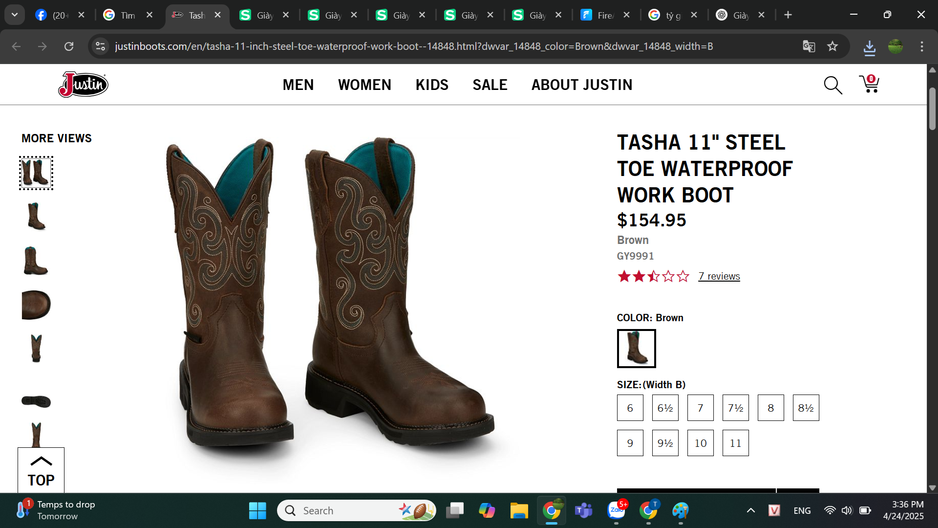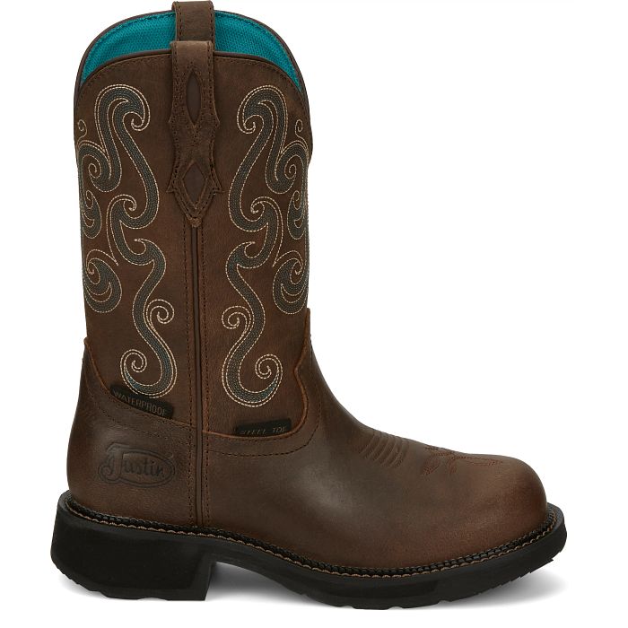 Giày bảo hộ nam, giày đi xe PKL, giày đi phượt da bò thật, chống nước, mũi bọc thép, đế cách điện và chống đinh chính hãng Justin Tasha 11" Steel Toe Waterproof Work Boot Brown style GY9991 - Giày xuất dư Mỹ