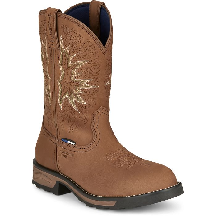 Giày bảo hộ nam, giày đi xe PKL, giày đi phượt da bò thật, chống nước, mũi bọc thép, đế cách điện và chống đinh chính hãng Tony Lama Boom 11" Composite Toe Waterproof Work Boot