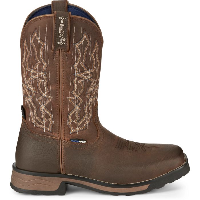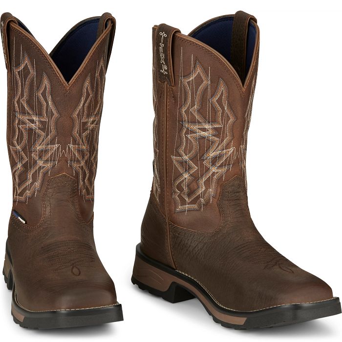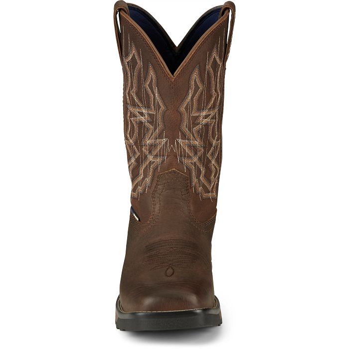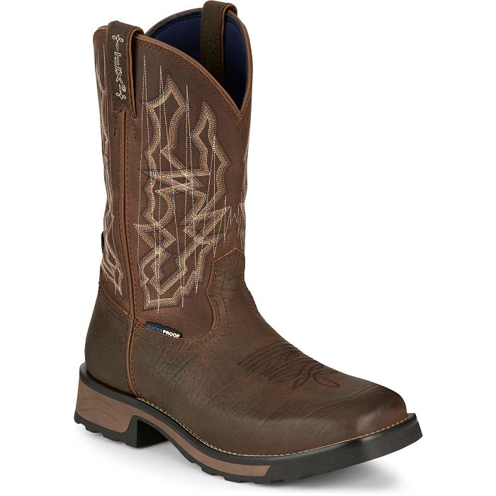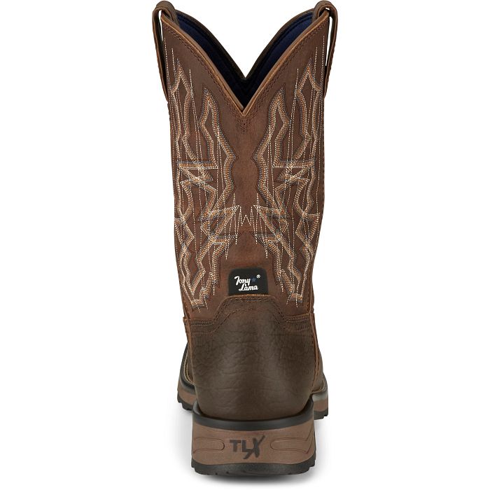 Giày bảo hộ nam, giày đi xe PKL, giày đi phượt da bò thật, chống nước, mũi bọc thép, đế cách điện và chống đinh chính hãng Tony Lama Men's Anchor Water Buffalo Pull-On Soft Western Work Boot Wide Square