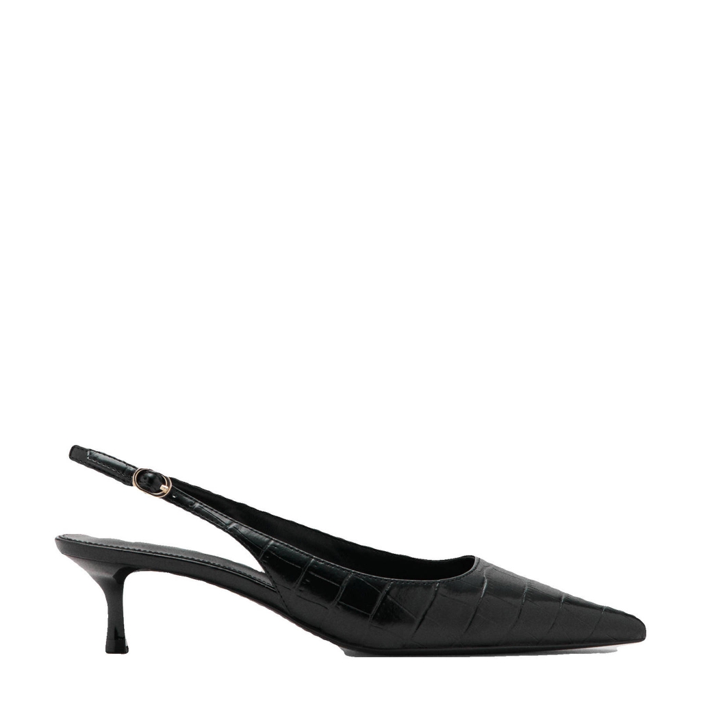 Giày Cao Gót Nữ Xuất Dư Chính Hãng M.N.G – Black Croc Embossed Slingback Kitten Heel Pump | Sang Trọng – Thanh Lịch – Giá Tốt