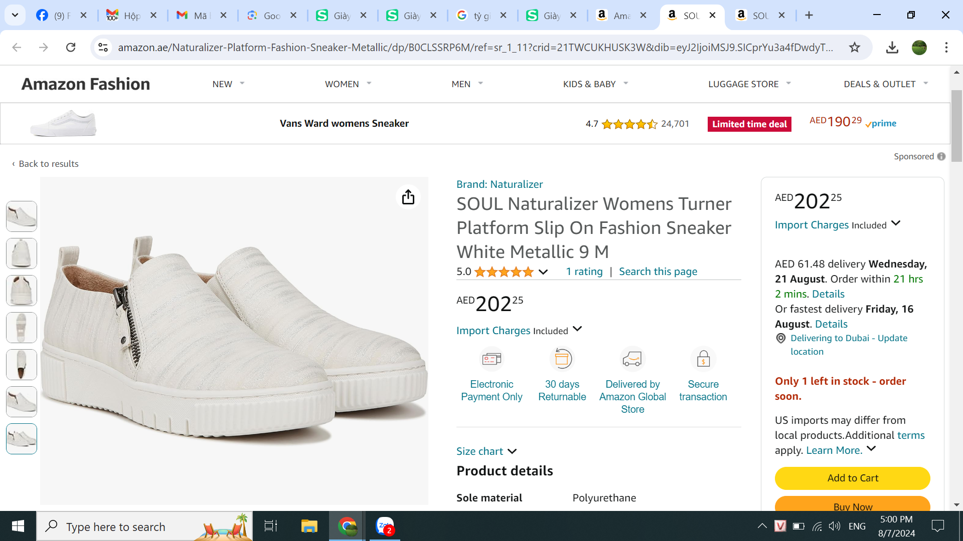 👠 Đôi này đang bán trên Amazon tại UAE là 202 AED, tương đương 1 triệu 400k VND. Các bạn có thể dùng hình ảnh để check giá trên mạng onl