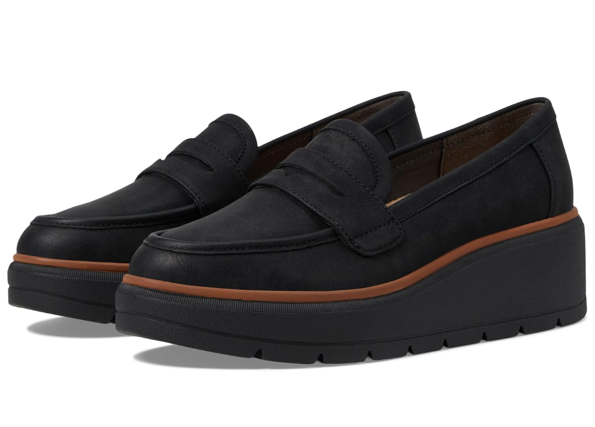 Giày nữ Womens DR. SCHOLL'S NICE DAY MAX Black Wedge Penny Loafer - Giày nữ xuất khẩu Âu, Mỹ
