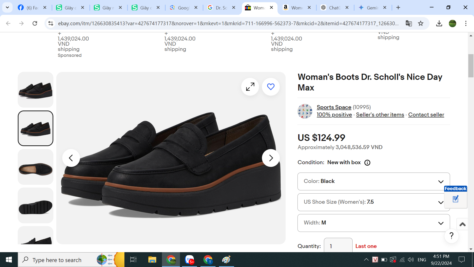 👠 Đôi tương tự bán trên Ebay tại Mỹ là 124.99 USD tương đương 3 triệu 040k, quý khách có thể dùng hình ảnh để check trên mạng online