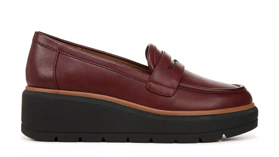 Giày nữ Womens DR. SCHOLL'S NICE DAY MAX Burgundy RECYCLED Wedge Penny Loafer - Giày nữ xuất khẩu Âu, Mỹ
