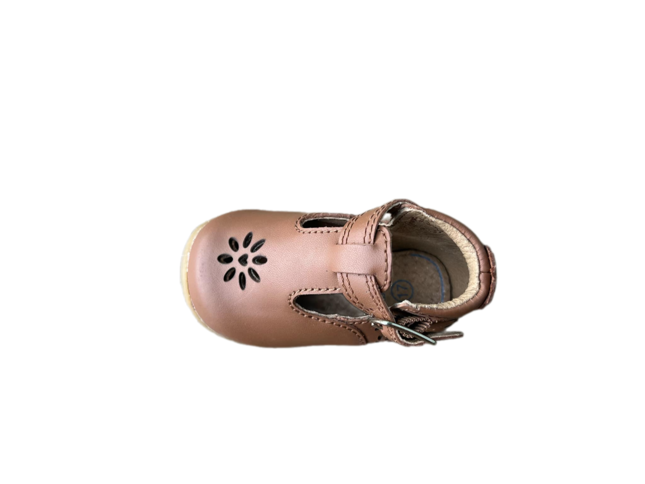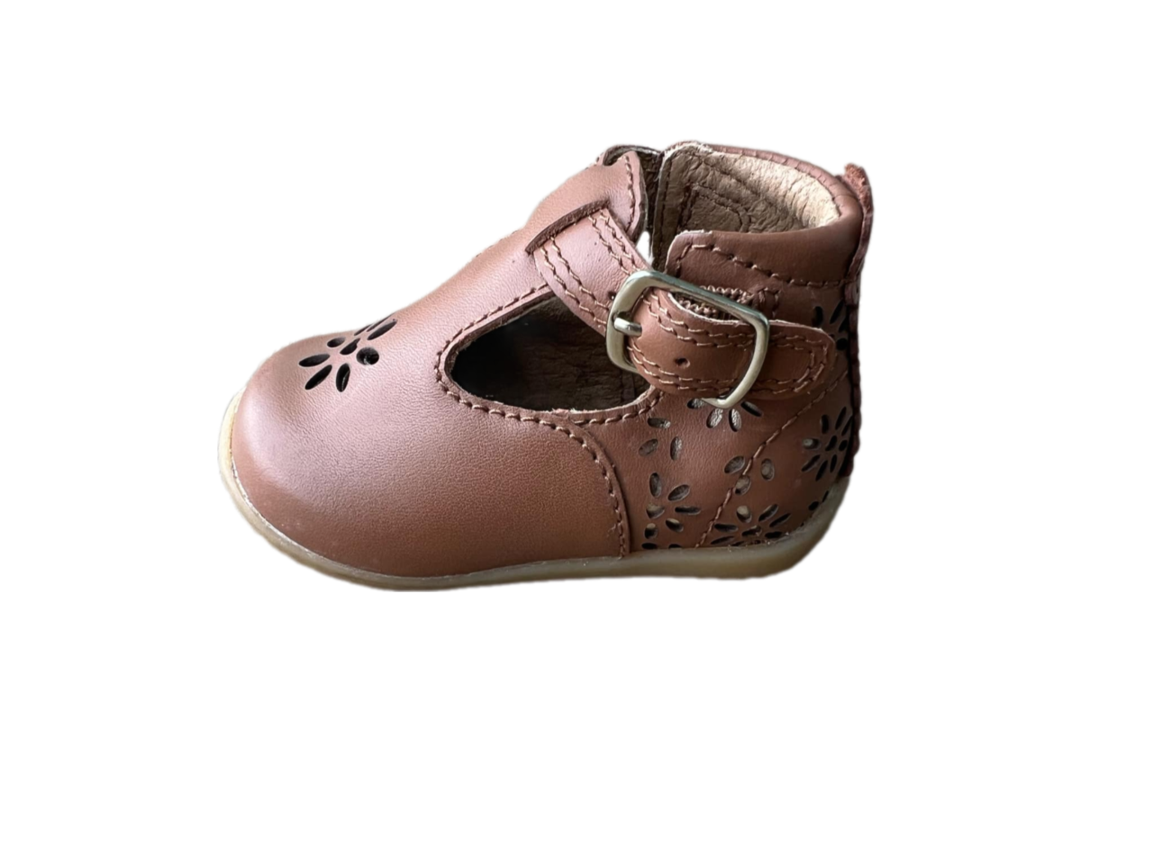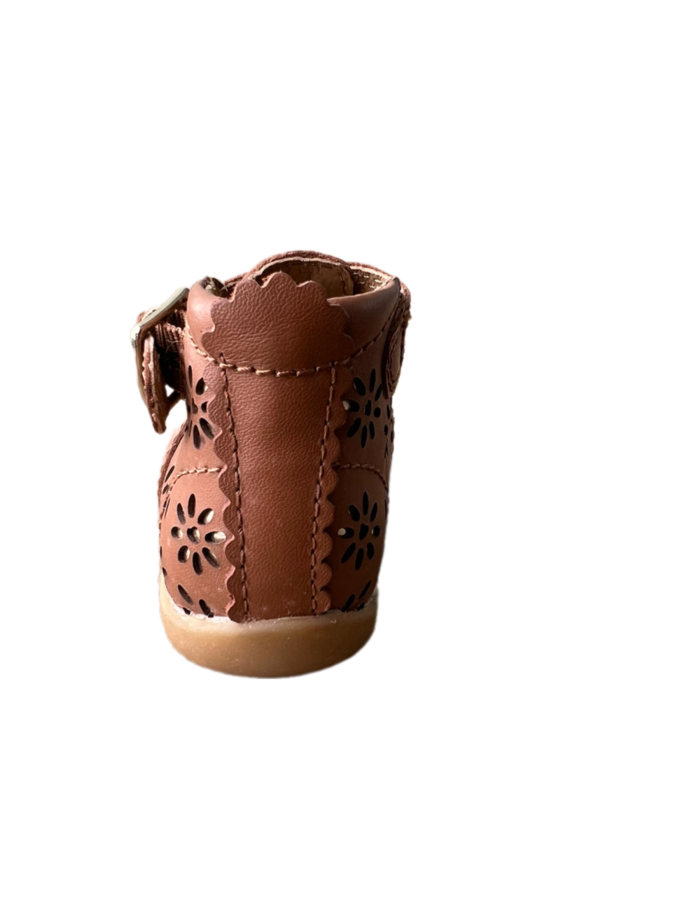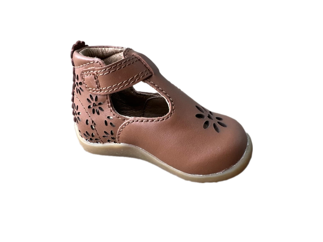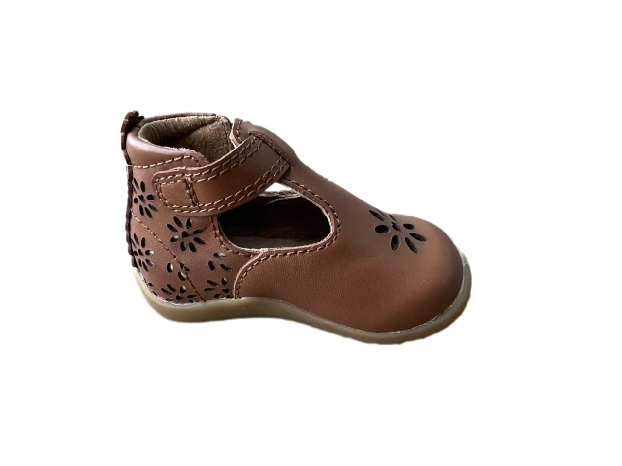 Thiết kế: Kiểu dáng Mary Jane với họa tiết hoa đục lỗ xinh xắn, quai dán tiện lợi giúp bé dễ mang vào/ tháo ra