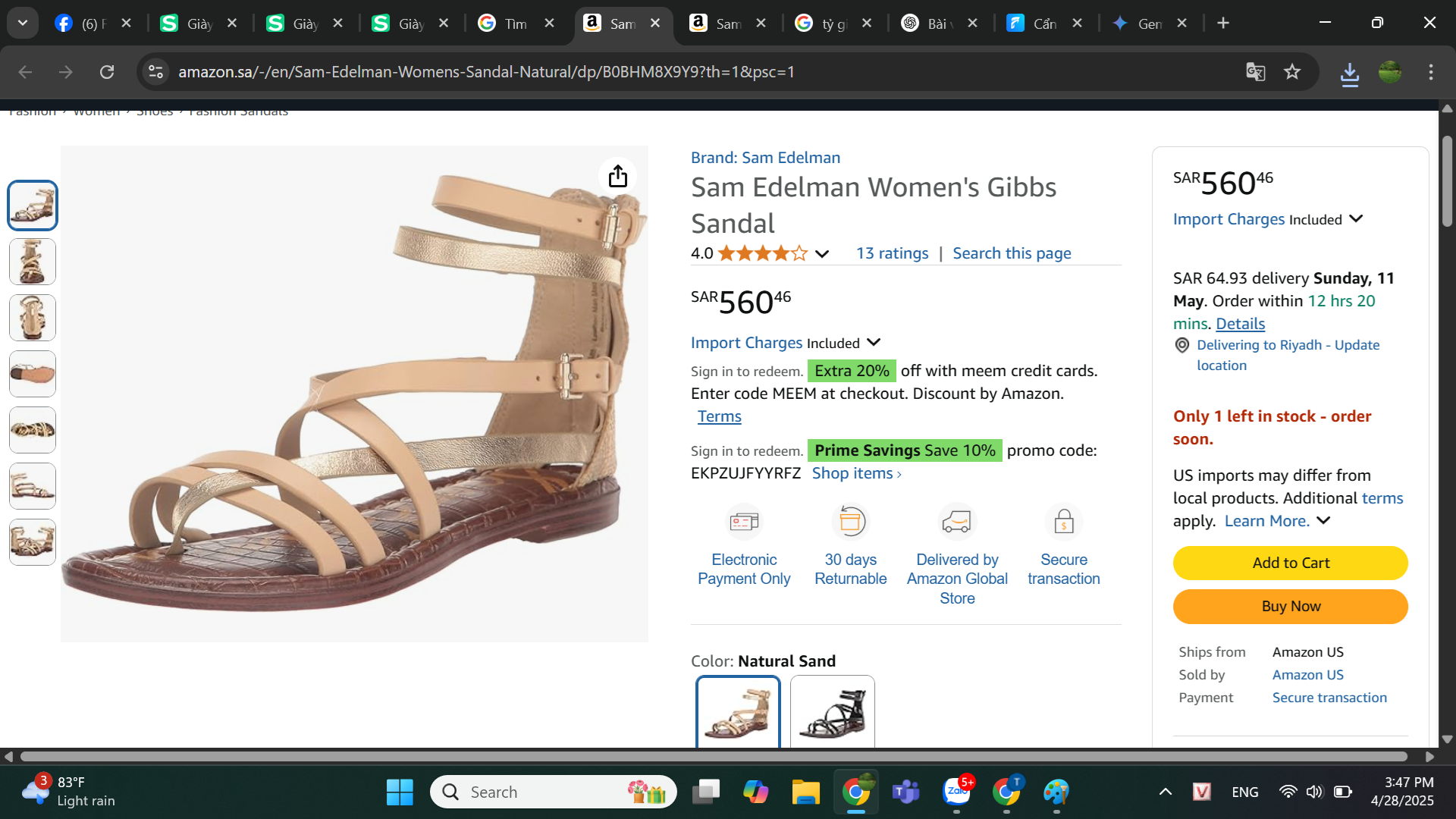 👠 Đôi tương tự bán tại hãng ở Ả Rập là 560 SAR tương đương 3 triệu 800k, quý khách có thể dùng hình ảnh để check trên mạng online