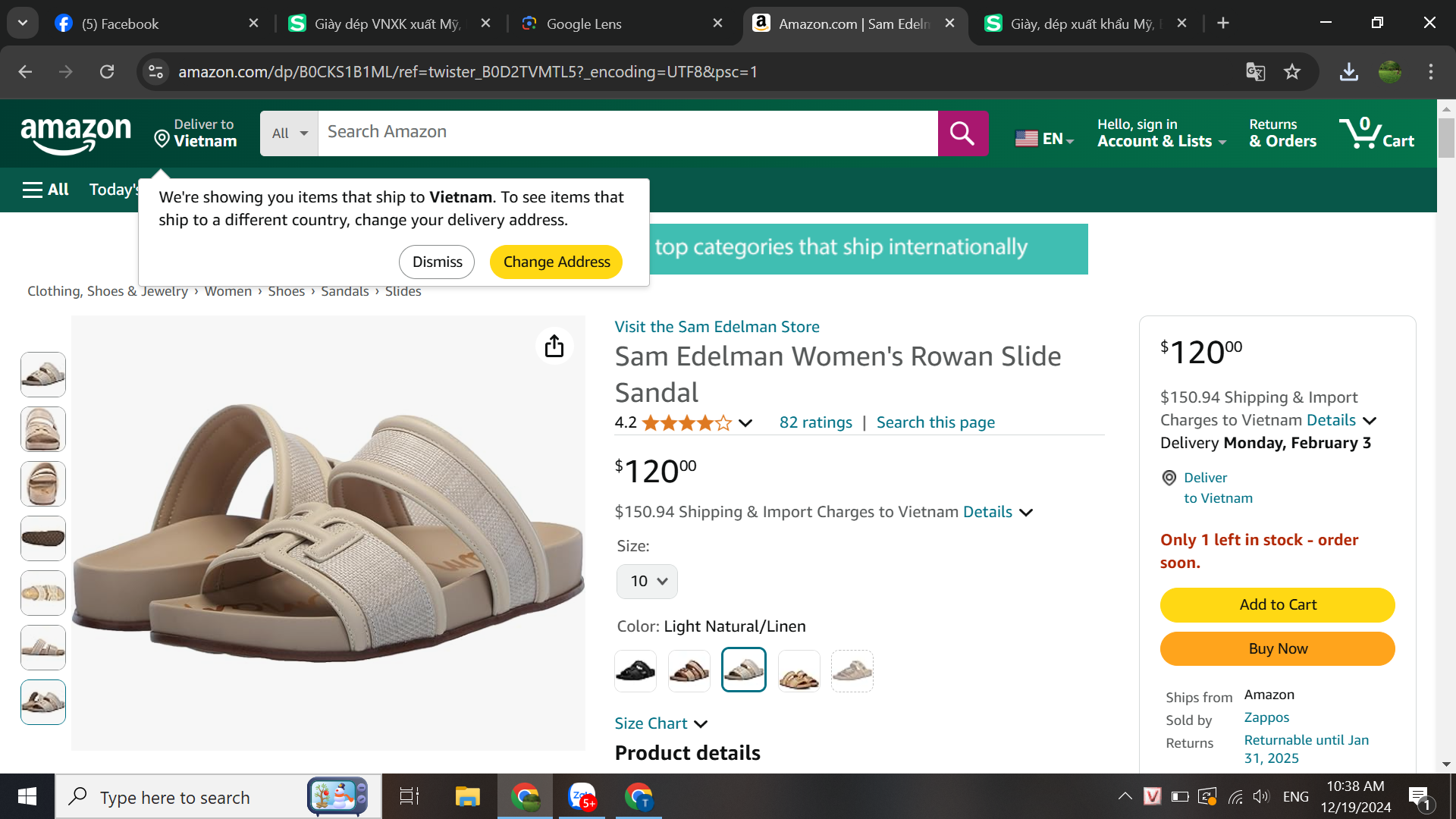 Sandal nữ Sam Edelman Women's Rowan Slide Sandal Light Natural - Giày xuất Mỹ, Âu