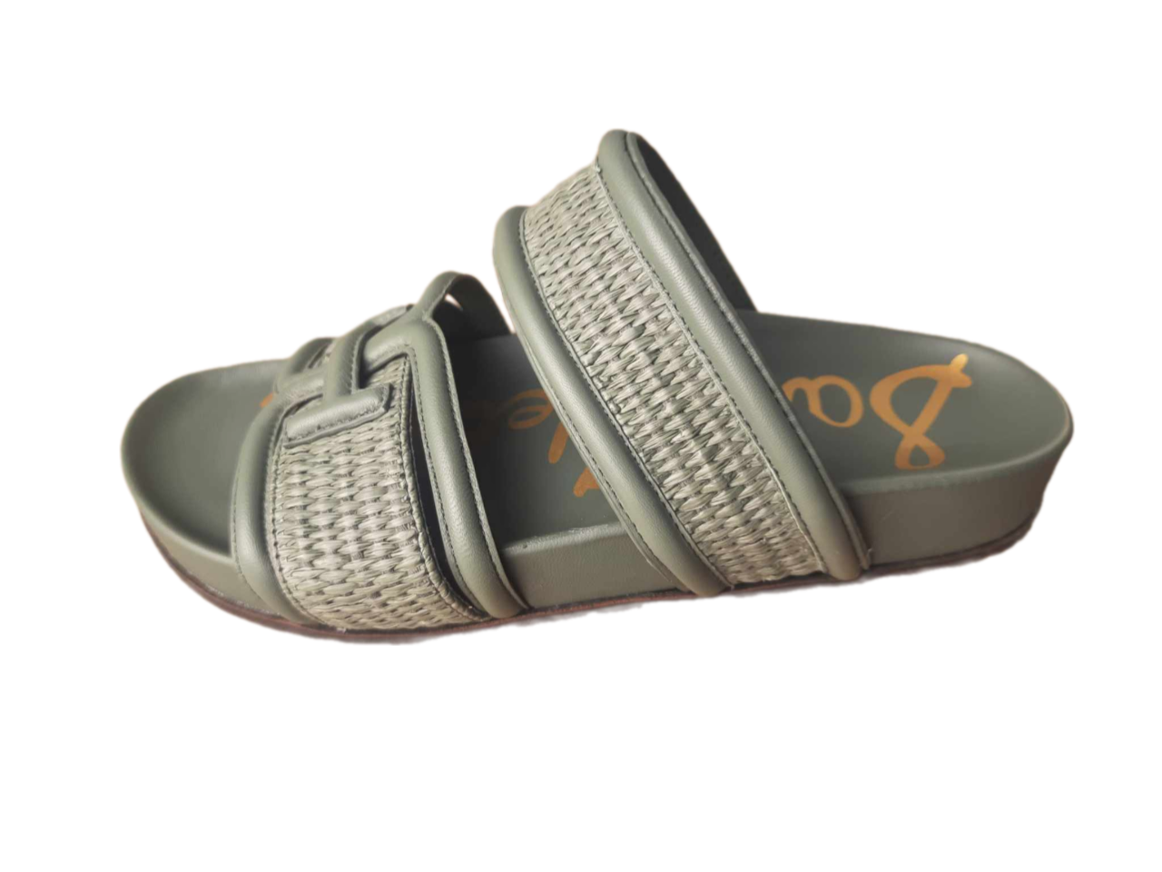 Sandal nữ Sam Edelman Women's Rowan Slide Sandal Light Natural màu xanh - Giày xuất Mỹ