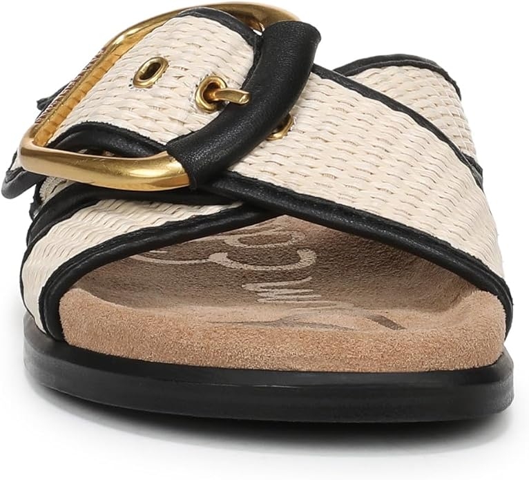 Sandal nữ Sam Edelman Womens Darla Multi Buckle Slide Sandal Color Linen/Black Faux Raffia - Giày nữ xuất dư Âu, Mỹ